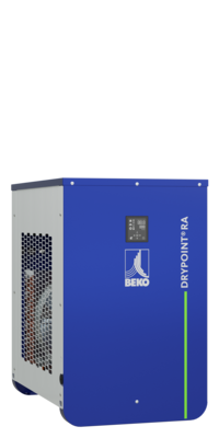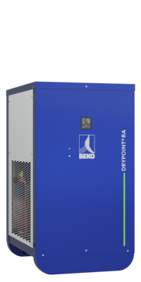 Elevate your compressed air treatment with the DRYPOINT RA III – an embodiment of inspiration, innovation, and conviction. BEKO TECHNOLOGIES is pioneering new standards in user-friendliness, reliability, and efficiency with this cutting-edge refrigeration dryer. Featuring an innovative heat exchanger design, a patented hot gas bypass valve, a stable dew point, and the integrated BEKOMAT condensate drain with zero compressed air loss, the DRYPOINT RA III represents a new era in advanced refrigeration dryers. The modern design with rounded corners not only adds a contemporary touch but also facilitates a compact and space-saving installation.