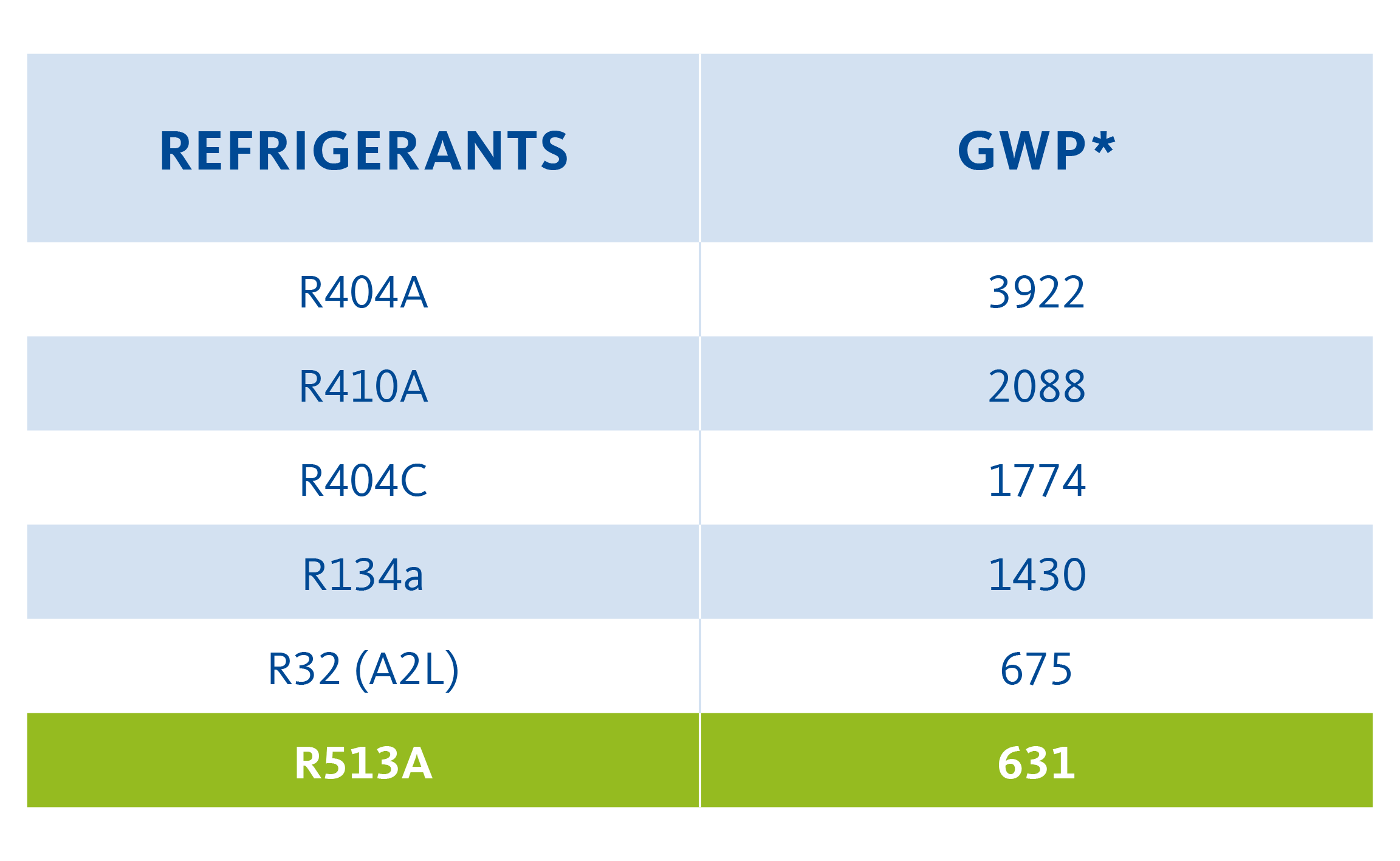 - Environmentally Friendly Refrigerants: Contributing to a sustainable future with ozone- and environmentally-friendly refrigerants (R513A).