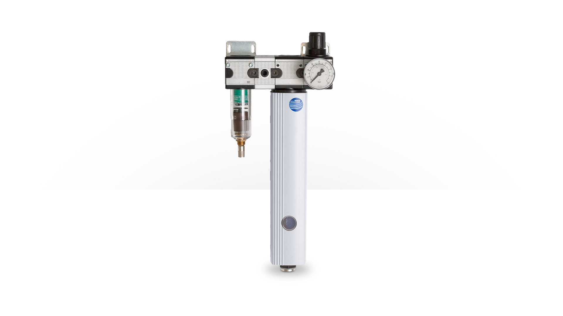 The FDR unit is a compact combination of filter (Filtration), dryer (Dryer) and pressure regulator (Regulation). It is an optimal solution for end-position applications. The FDR unit is delivered as a completely pre-assembled and only needs to be connected to the compressed air supply. The pressure regulator ensures constant pressure at the end position with 3 - 10 bar.