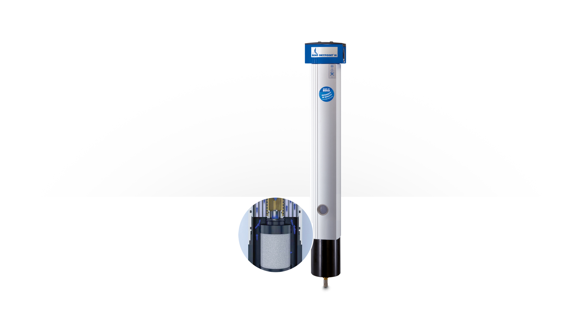 The DRYPOINT M PLUS membrane dryer with integrated nanofilter has been the tried and tested solution for efficient filtration and drying in one housing for 10 years. It provides reliable compressed-air drying with low purge air requirement, requires no electrical energy and no environmentally harmful adsorbent agents. The integrated nanofilter increases the quality of the dried compressed air, the safety and long-term stability of the highly selective hollow fibre diaphragms. Since the compressed air composition is not altered in any way, the DRYPOINT M PLUS can be utilised for respiratory air processing.
