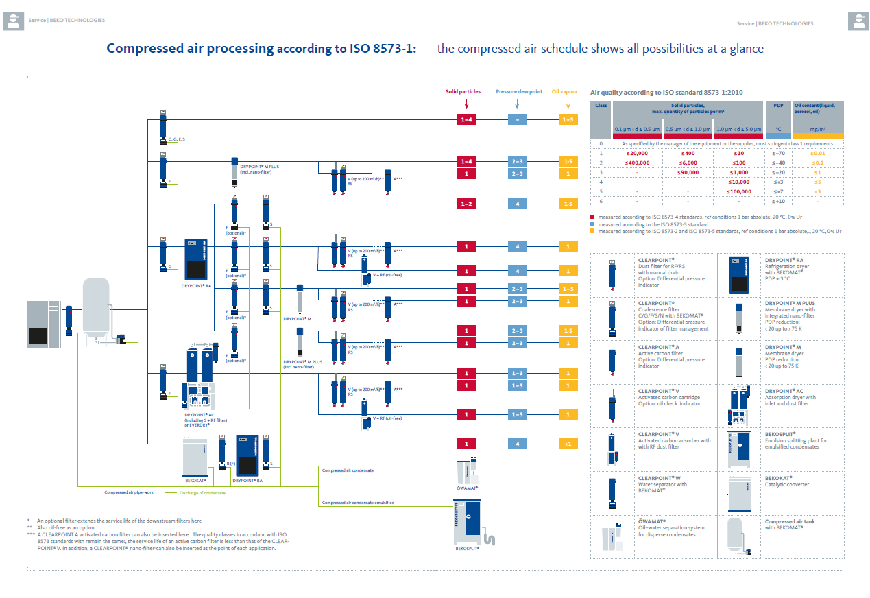 The compressed air schedule shows an overview with all possibilities. How to achieve a certain compressed air quality with which compressed air preparation products.