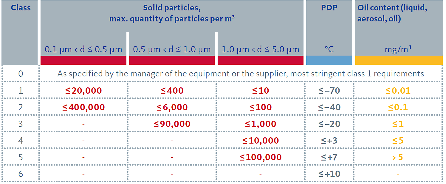 Compressed air quality according to ISO 8573.1
